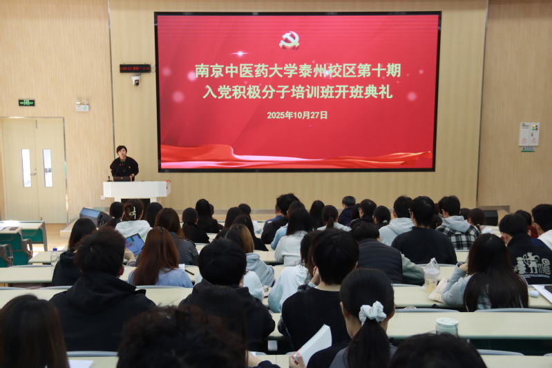 10月27日中午,南京中医药大学泰州校区第十期入党积极分子培训班开班典礼在J3-102报告厅顺利举行。南京中医药大学泰州校区党总支书记、分党校校长王海波,泰州校区党总支副书记、分党校副校长何学建,泰州校区党总支副书记、分党校副校长李鑫出席典礼。参加本次开班典礼的还有本期培训班全体班主任和92名入党积极分子学员。开班仪式由泰州校区组织员移敏主持。