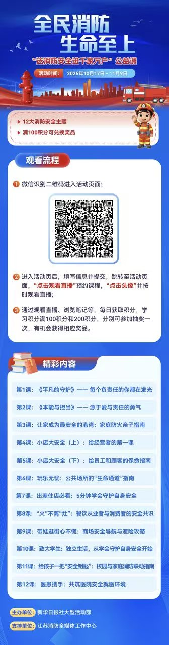 参与方式:请全体人员通过微信扫描下方二维码(进入“送消防安全进千家万户”公益课活动页面,按照页面提示完成观看学习。
