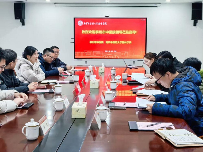 1月6日下午,泰州市中医院科技处处长田虎、老年病科主任陈燕一行到访南京中医药大学泰州校区、翰林学院,围绕“科研平台建设与战略合作”主题开展专题调研。南京中医药大学泰州校区管理办公室主任、翰林学院院长张丽,泰州校区管理办公室副主任、教务处副处长、翰林学院副院长姚卫峰,实验室管理处处长吴浩,科技处处长耿婷等参加座谈会。