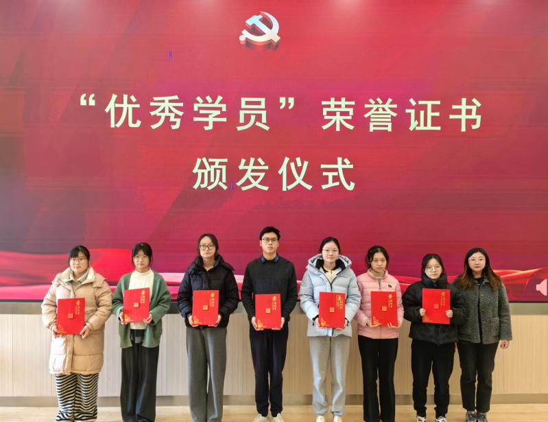 王松云同志宣读了《关于表彰南京中医药大学泰州校区第十期入党积极分子培训班“优秀学员”的决定》,并为沈佳瑜、樊欣、王煜涵、李亦心、郭静娴、蔡萌萌、戴致远、夏侯辰星、范雯欣等9名“优秀学员”颁发荣誉证书。