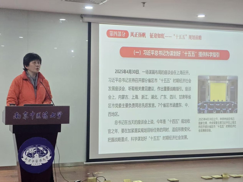 张丽在宣讲时用一组“十五五”中的关键词带领大家读懂五年规划,以及中国式现代化在全局中的定位。号召翰林学院、泰州校区全体师生站在“十四五”收官与“十五五”即将开启的历史节点,要以“功成不必在我”的精神境界和“功成必定有我”的历史担当,将既有经验转化为前进动力,始终保持奋进姿态,坚守人民情怀,为全面推进中华民族伟大复兴贡献智慧和力量。